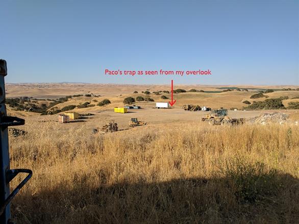 Preplan a location you can quietly observe and or listen for a trap activation. This should be downwind of the dog if possible (i.e. you don't want the dog to be able to smell you as it may keep the dog away).